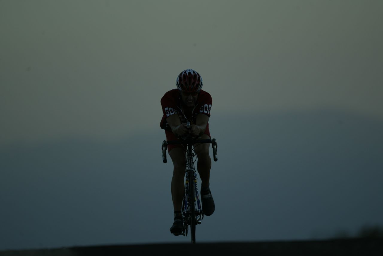 photo of coach ilg, during an 111-mile twilight into early morning pull during a championship effort at the Furnace Creek 508. photo; LA Times.