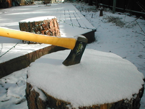 photo: snow is falling at the WF Temple H(om)e yet my Ax of Awareness is never allowed to become dull by searching outside my current Practice or Teachers. Deep, not Wide. That is how we strike the true Go(l)d; the Awakening of Kundalini through strong and capable gross, subtle, and refined anatomy. photo by coach
